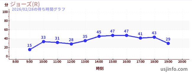 • ジョーズ(R)$B$N(B2026年02月28日の待ち時間