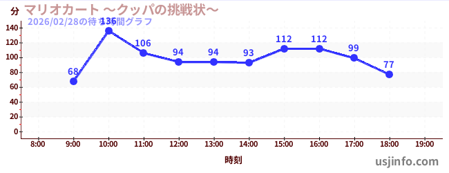 • マリオカート ~クッパの挑戦状~$B$N(B2026年02月28日の待ち時間