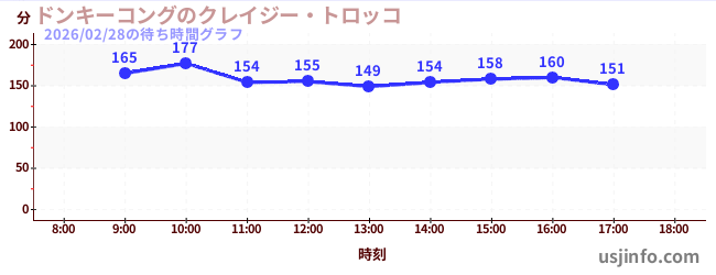 • ドンキーコングのクレイジー・トロッコ$B$N(B2026年02月28日の待ち時間