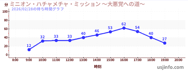 • ミニオン・ハチャメチャ・ミッション ~大悪党への道~$B$N(B2026年02月28日の待ち時間