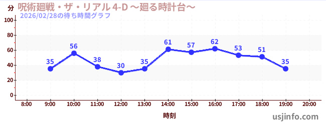• 呪術廻戦・ザ・リアル 4-D ~廻る時計台~$B$N(B2026年02月28日の待ち時間
