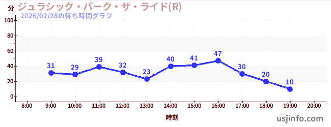 • ジュラシック・パーク・ザ・ライド(R)$B$N(B2026年02月28日の待ち時間