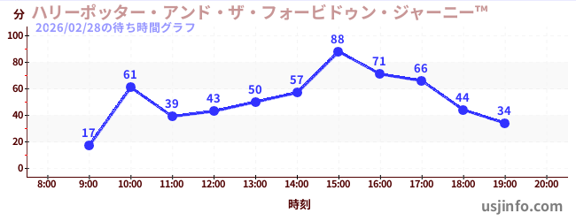 • ハリーポッター・アンド・ザ・フォービドゥン・ジャーニー™$B$N(B2026年02月28日の待ち時間