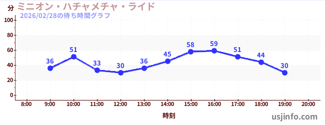 • ミニオン・ハチャメチャ・ライド$B$N(B2026年02月28日の待ち時間