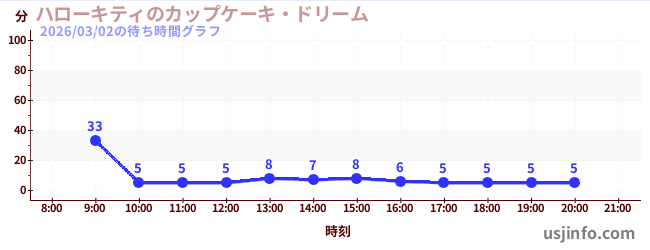• ハローキティのカップケーキ・ドリーム$B$N(B2026年03月02日の待ち時間