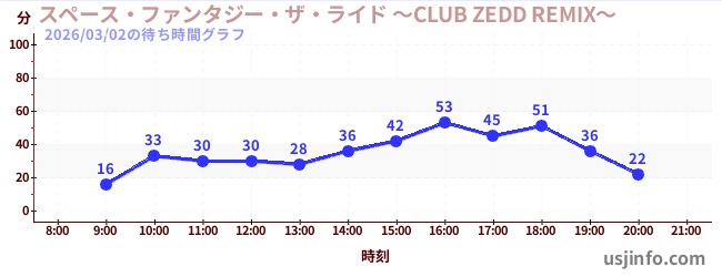 • スペース・ファンタジー・ザ・ライド ~CLUB ZEDD REMIX~$B$N(B2026年03月02日の待ち時間
