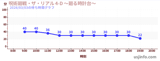• 呪術廻戦・ザ・リアル 4-D ~廻る時計台~$B$N(B2026年03月03日の待ち時間