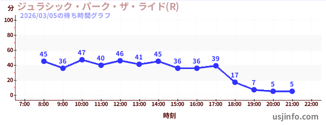 • ジュラシック・パーク・ザ・ライド(R)$B$N(B2026年03月05日の待ち時間