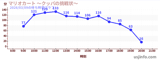 • マリオカート ~クッパの挑戦状~$B$N(B2026年03月09日の待ち時間