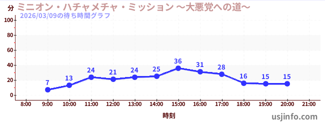 • ミニオン・ハチャメチャ・ミッション ~大悪党への道~$B$N(B2026年03月09日の待ち時間
