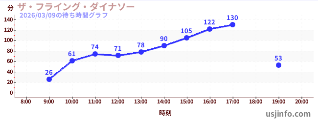 • ザ・フライング・ダイナソー$B$N(B2026年03月09日の待ち時間