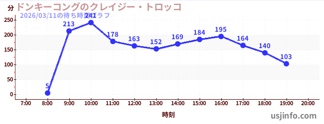 • ドンキーコングのクレイジー・トロッコ$B$N(B2026年03月11日の待ち時間