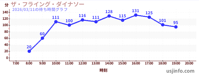 • ザ・フライング・ダイナソー$B$N(B2026年03月11日の待ち時間