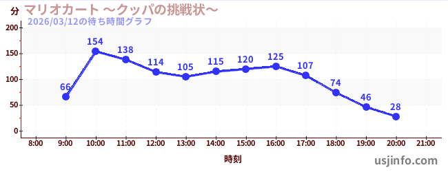 • マリオカート ~クッパの挑戦状~$B$N(B2026年03月12日の待ち時間