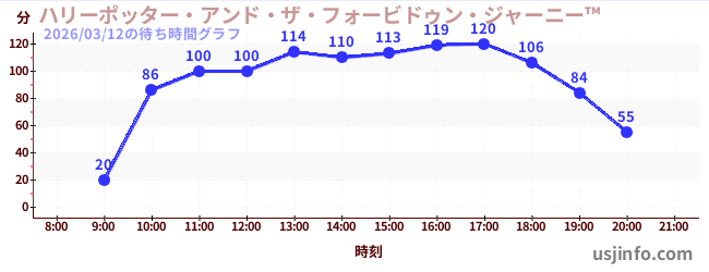 • ハリーポッター・アンド・ザ・フォービドゥン・ジャーニー™$B$N(B2026年03月12日の待ち時間