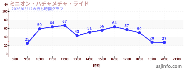 • ミニオン・ハチャメチャ・ライド$B$N(B2026年03月12日の待ち時間