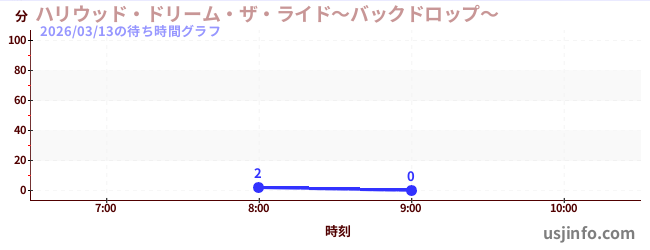 • ハリウッド・ドリーム・ザ・ライド〜バックドロップ〜$B$N(B2026年03月13日の待ち時間