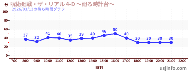 • 呪術廻戦・ザ・リアル 4-D ~廻る時計台~$B$N(B2026年03月13日の待ち時間