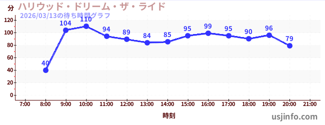 • ハリウッド・ドリーム・ザ・ライド$B$N(B2026年03月13日の待ち時間