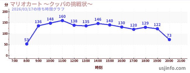 • マリオカート ~クッパの挑戦状~$B$N(B2026年03月17日の待ち時間