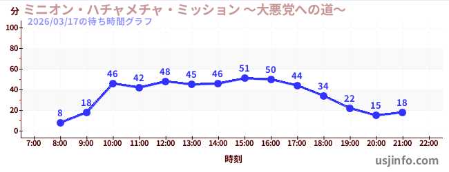 • ミニオン・ハチャメチャ・ミッション ~大悪党への道~$B$N(B2026年03月17日の待ち時間
