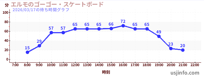 • エルモのゴーゴー・スケートボード$B$N(B2026年03月17日の待ち時間