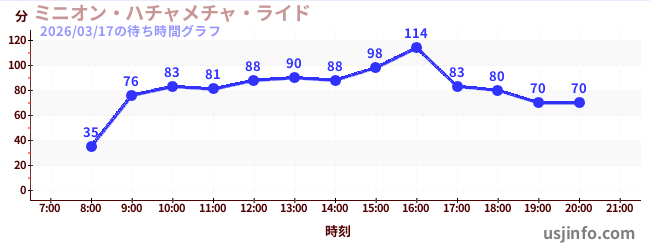 • ミニオン・ハチャメチャ・ライド$B$N(B2026年03月17日の待ち時間