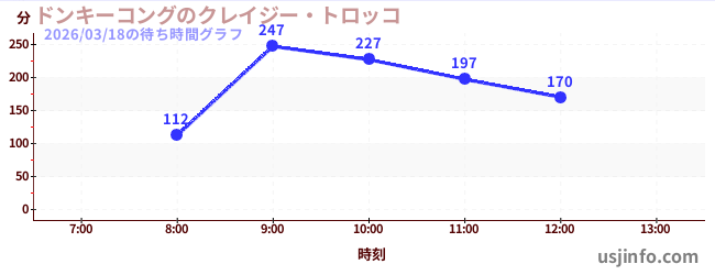• ドンキーコングのクレイジー・トロッコ$B$N(B2026年03月18日の待ち時間