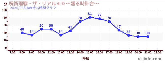 • 呪術廻戦・ザ・リアル 4-D ~廻る時計台~$B$N(B2026年03月18日の待ち時間