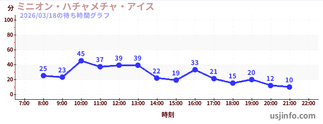 • ミニオン・ハチャメチャ・アイス$B$N(B2026年03月18日の待ち時間
