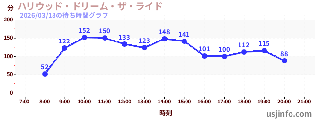 • ハリウッド・ドリーム・ザ・ライド$B$N(B2026年03月18日の待ち時間
