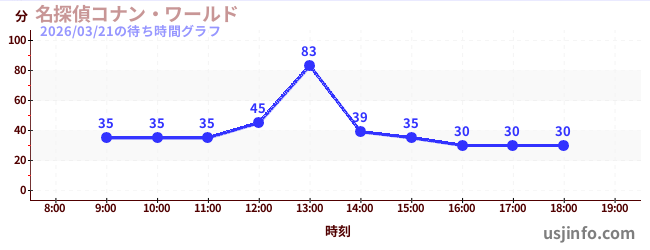 • 名探偵コナン・ワールド$B$N(B2026年03月21日の待ち時間