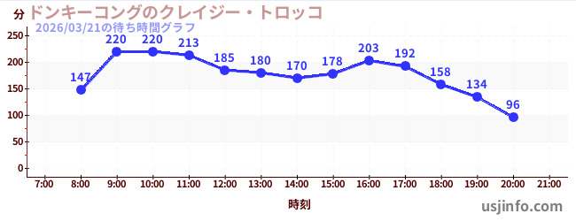 • ドンキーコングのクレイジー・トロッコ$B$N(B2026年03月21日の待ち時間