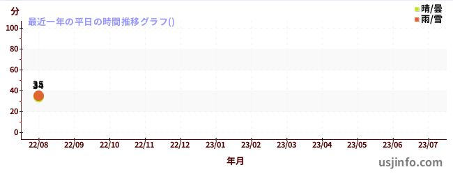 • ミニオン・ハチャメチャ・ミッション ~大悪党への道~$B$N(Bここ一年間の平日の待ち時間