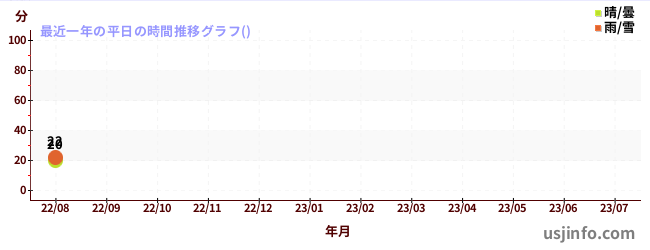 • ドラえもん XRライド ~のび太と空の理想郷(ユートピア)~$B$N(Bここ一年間の平日の待ち時間