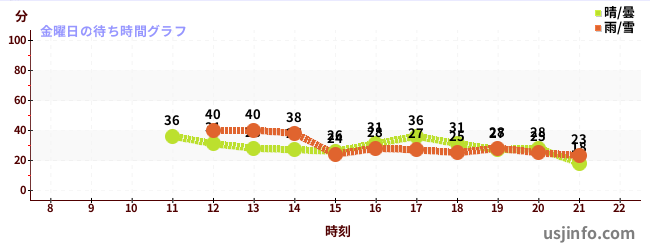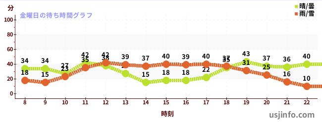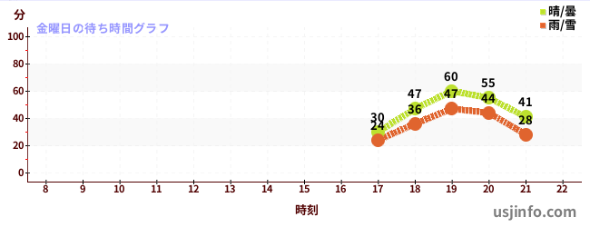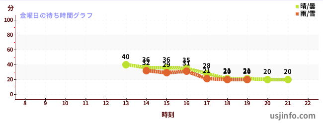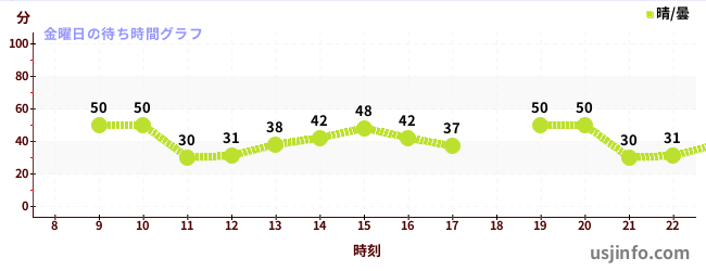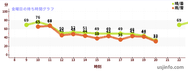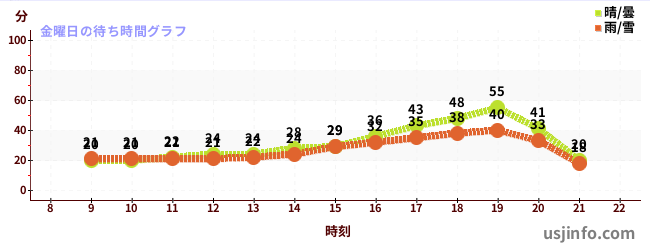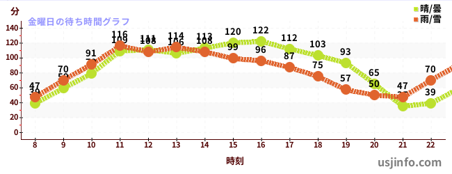 • ユニバーサル・モンスターズ ~レジェンド・オブ・フィアー~$B$N(B金曜日の平均待ち時間