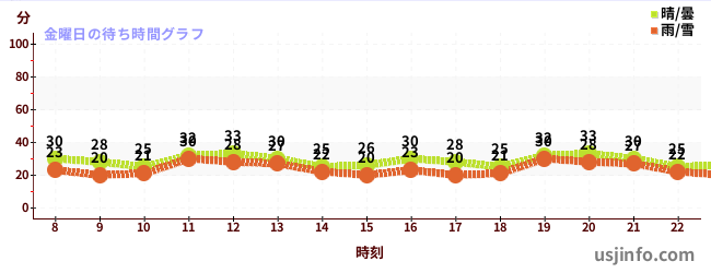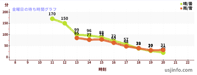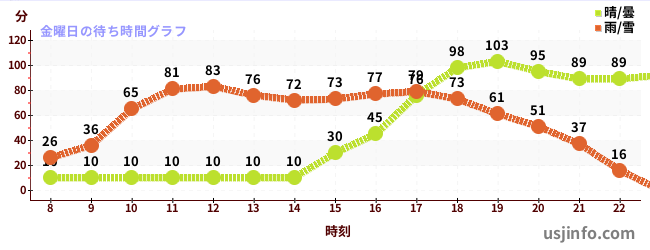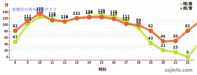 • ミニオン・ハチャメチャ・ライド$B$N(B金曜日の平均待ち時間