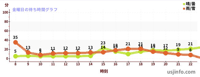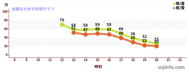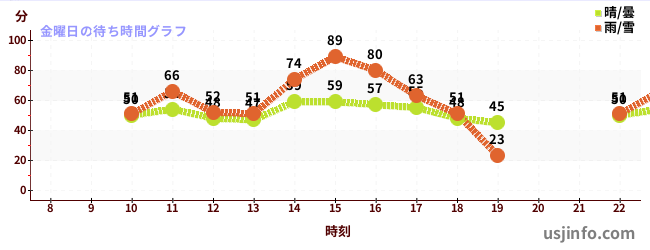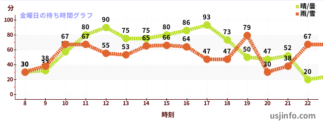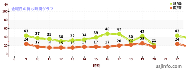 • ミニオン・ハチャメチャ・アイス$B$N(B金曜日の平均待ち時間