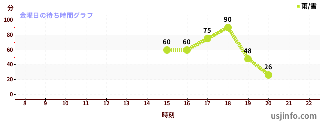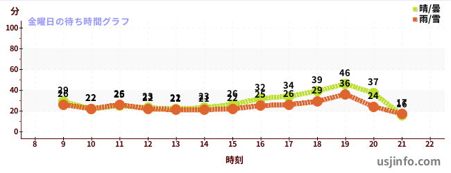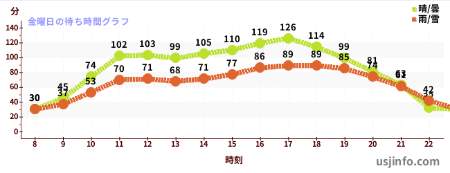 • ハリウッド・ドリーム・ザ・ライド〜バックドロップ〜$B$N(B金曜日の平均待ち時間